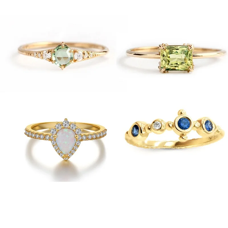 Женское Золотое кольцо Carline из стерлингового серебра с зеленым и синим цирконием 2024 женское изящное опалом оптовая продажа