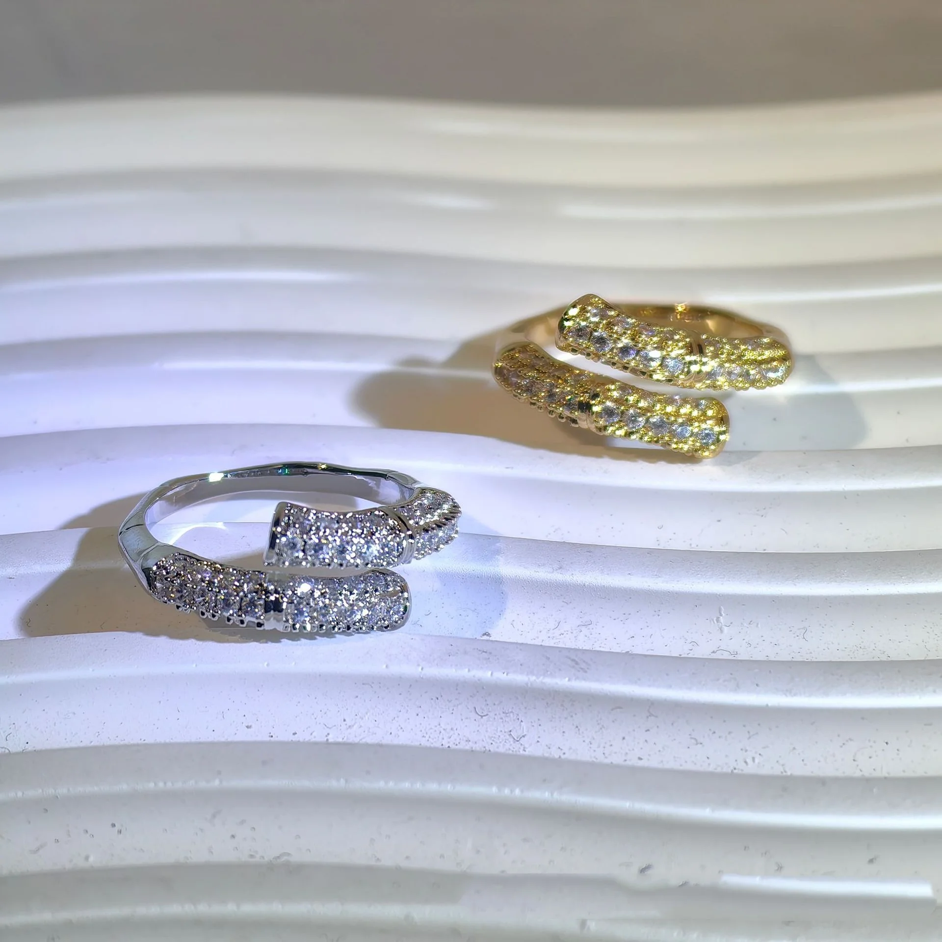 Новый китайский стиль полностью циркониевое позолоченное Гальваническое бамбуковое кольцо с регулируемым размером