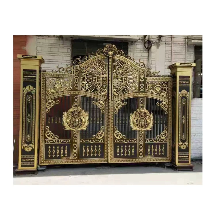 Горячая продажа Золотая краска кованые ворота конструкции двойные двери