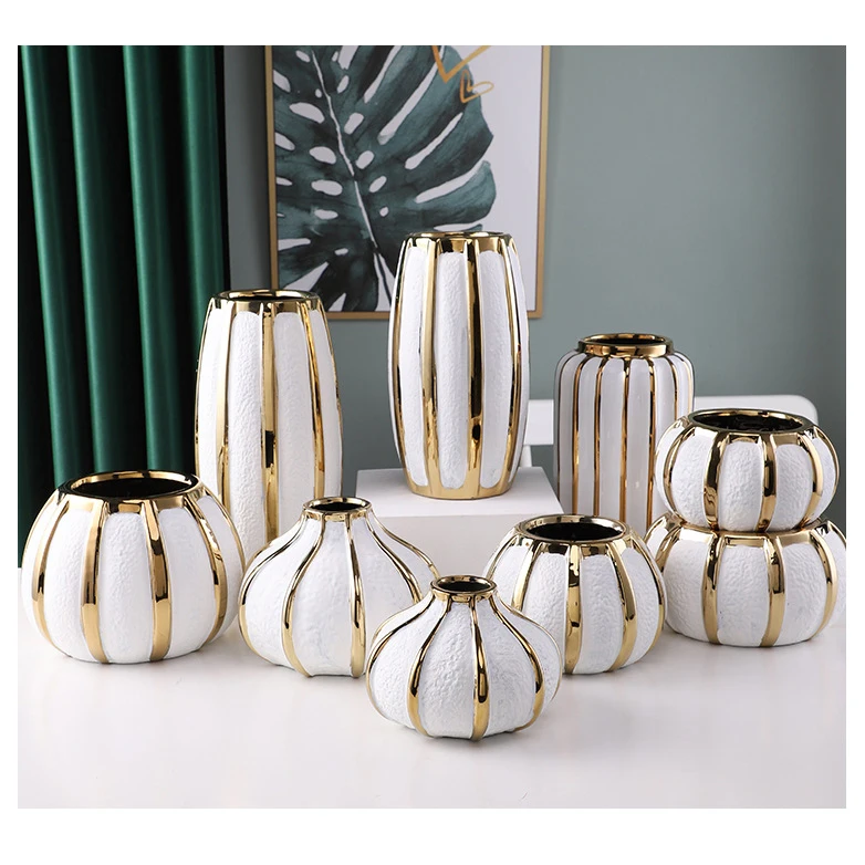 Роскошная белая и Золотая ваза для цветов