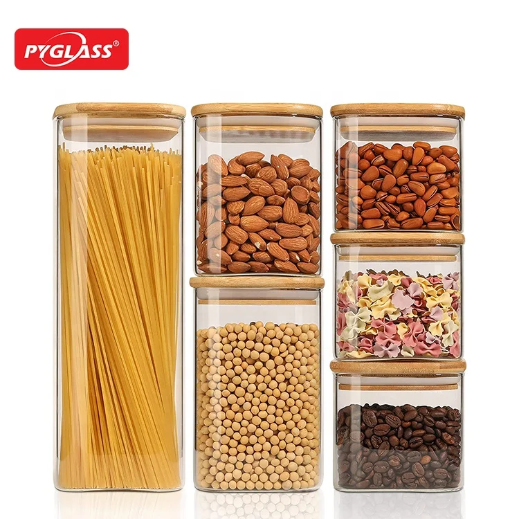 Квадратные стеклянные контейнеры для хранения пищевых продуктов от PYGLASS набор кухонных емкостей с герметичной бамбуковой крышкой большие банки 0,68 $
