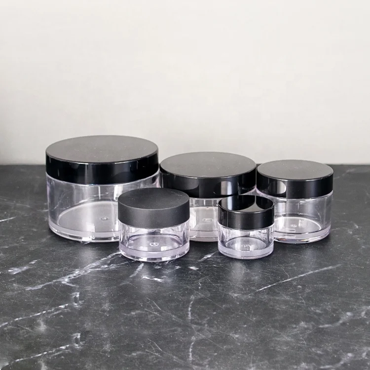 Оптовая продажа, прозрачные банки для крема из ПЭТ 50 мл, 80 мл, 100 мл, 120 мл, 150 мл, 200 мл, 250 мл, 500 мл, пластиковый контейнер для скраба тела с черными крышками