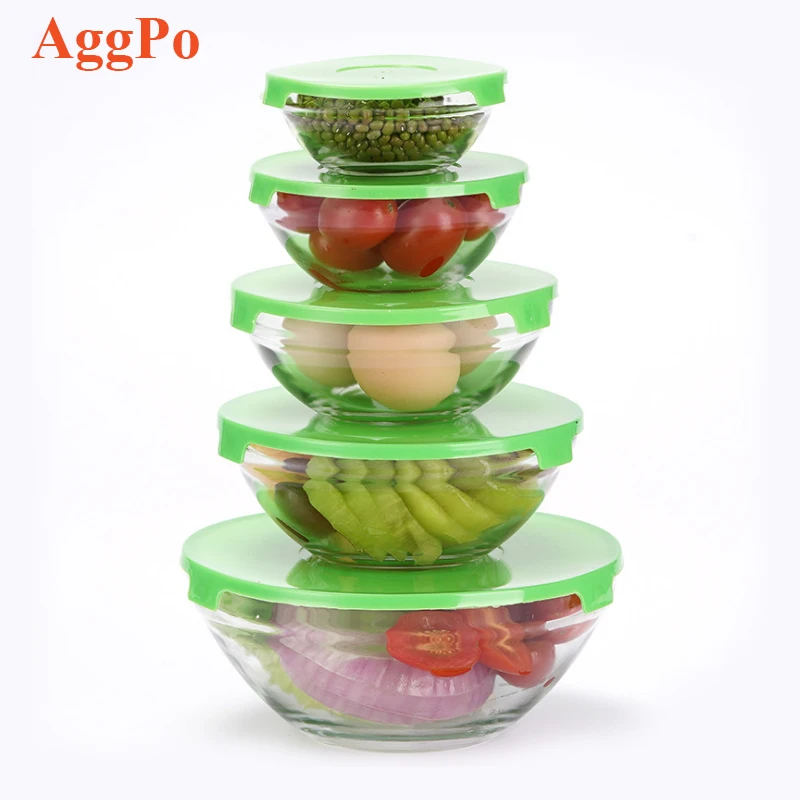 Оптовая продажа; 5 штук в партии стеклянный Набор салатников с крышкой стекла контейнер сохраняющий свежесть чаши 189,83 ₽ - 454,92 ₽
