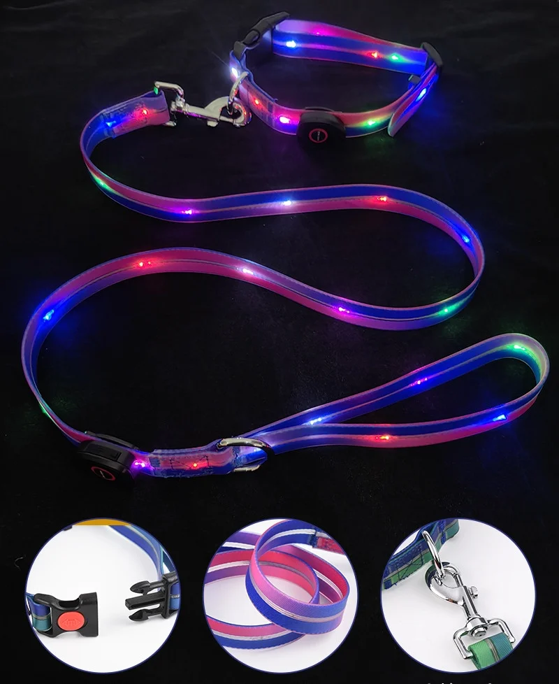 Пользовательский водонепроницаемый светящийся Светоотражающий ошейник для домашних животных Регулируемый USB Type C подзарядка роскошный светодиодный собак