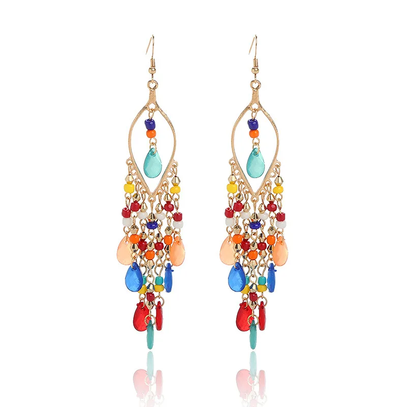 Богемные Длинные Модные Преувеличенные капли воды с бахромой модные серьги из бисера 77,61 ₽ - 91,31 ₽