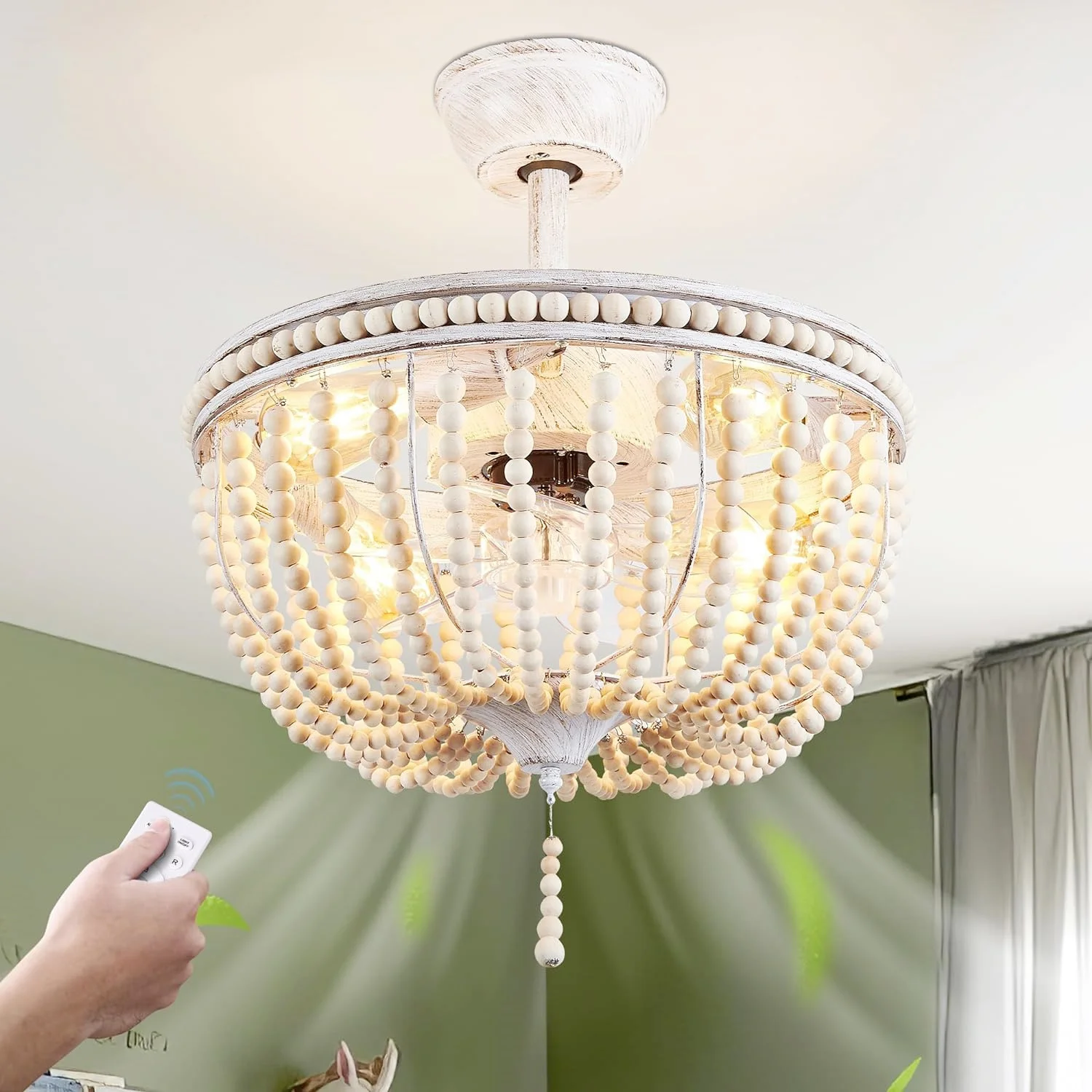 Деревянный шарик, оптовая продажа, потолочный вентилятор в стиле бохо с пультом дистанционного управления для спальни, кухни, прихожей, антикварный светодиодный потолочный вентилятор