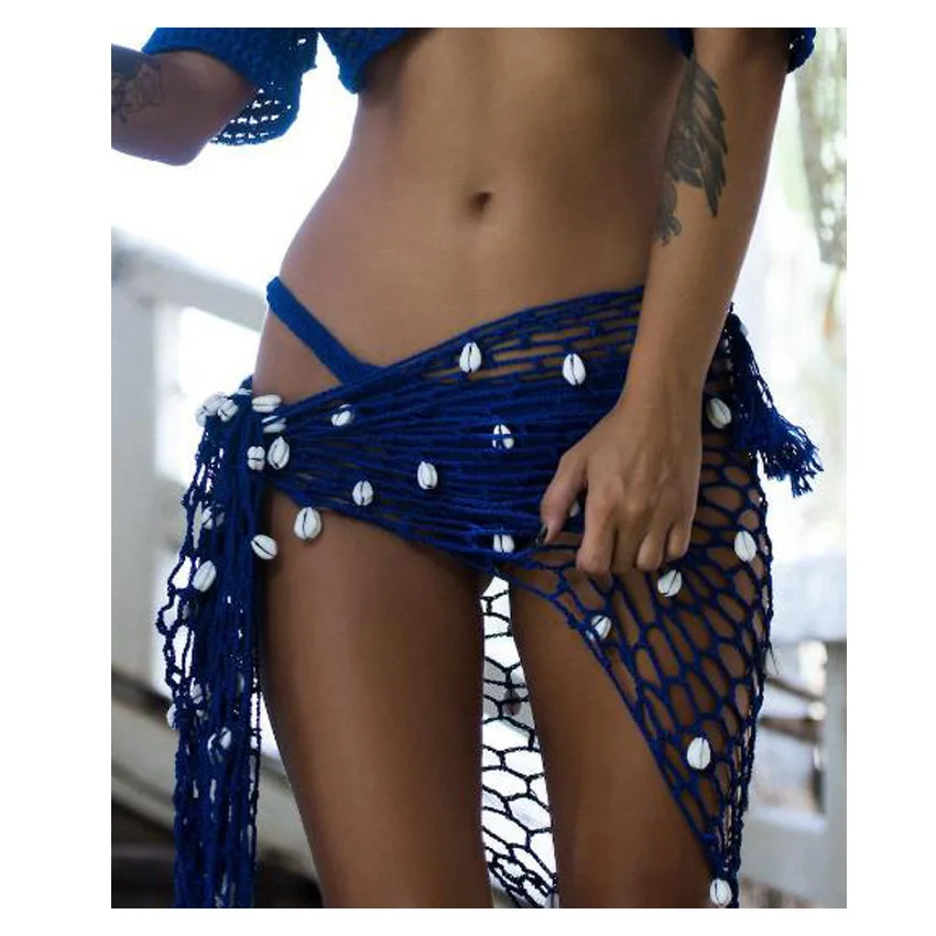 2023 модная летняя женская пикантная свободная пляжная юбка в богемном стиле накидка на бикини вязаное крючком с кисточками купальник платье