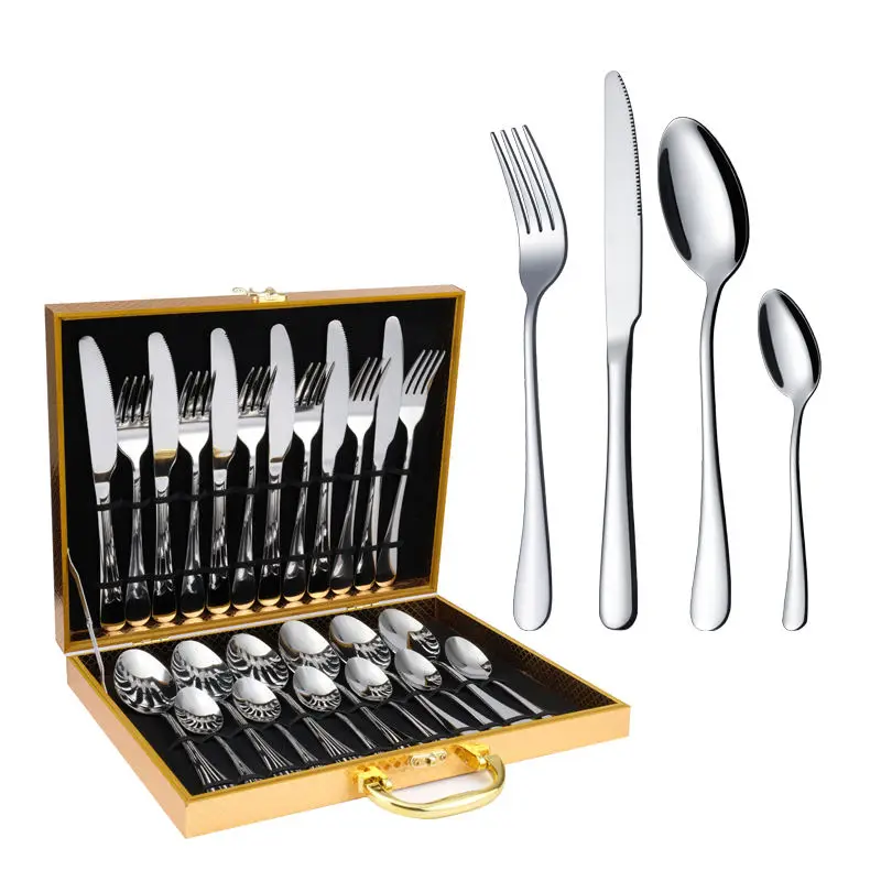 Stainless Steel 24 Piece Set Rack plastic / Ceramic Handle Knife Fork Spoon Gift Box Set Western Food Nordic Style cutlery set