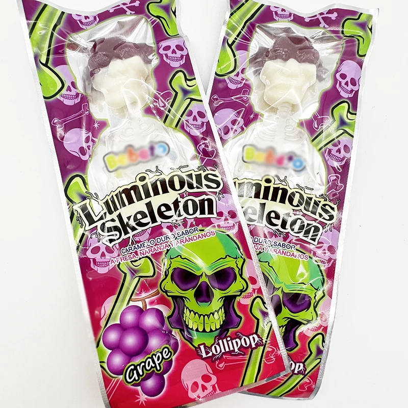 Высококачественные конфеты игрушки Хэллоуин твердые скелет светящийся череп леденец в форме конфет индивидуально завернутые Халяльные