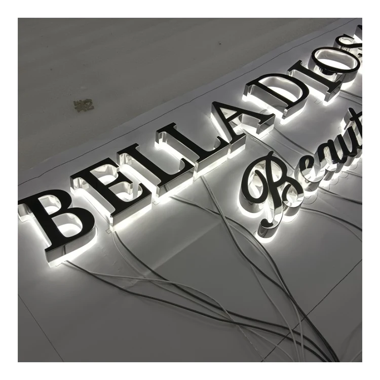 Пользовательский хромированный логотип Серебряный 3d акриловый знак с подсветкой зеркальный настенный бизнес металлическая буква