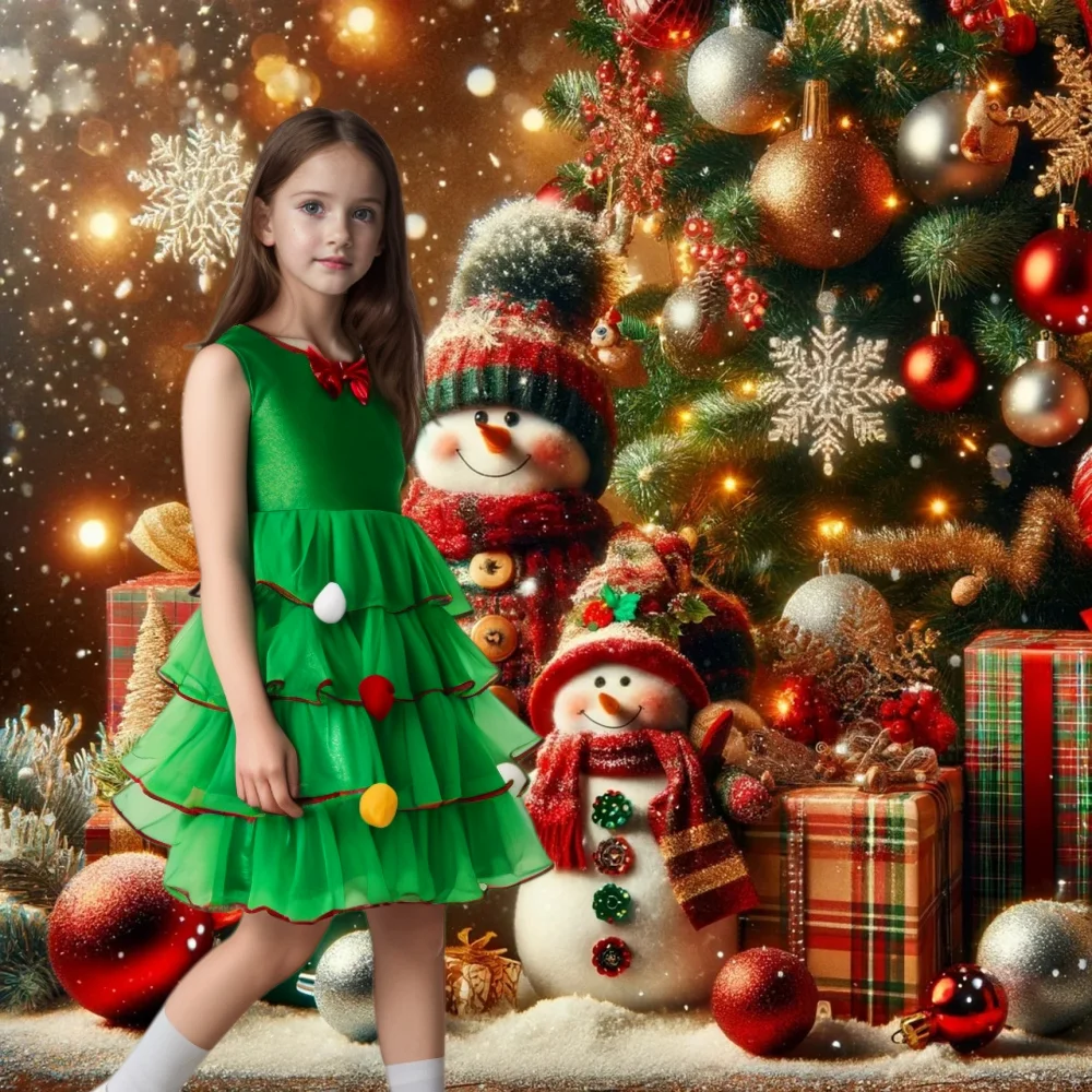 2024 новый дизайн высокое качество Девушки без рукавов Зеленый Тюль рождественское платье Пышная юбка с рождественской звездой шляпа 1 102,97-1 302,97 ₽