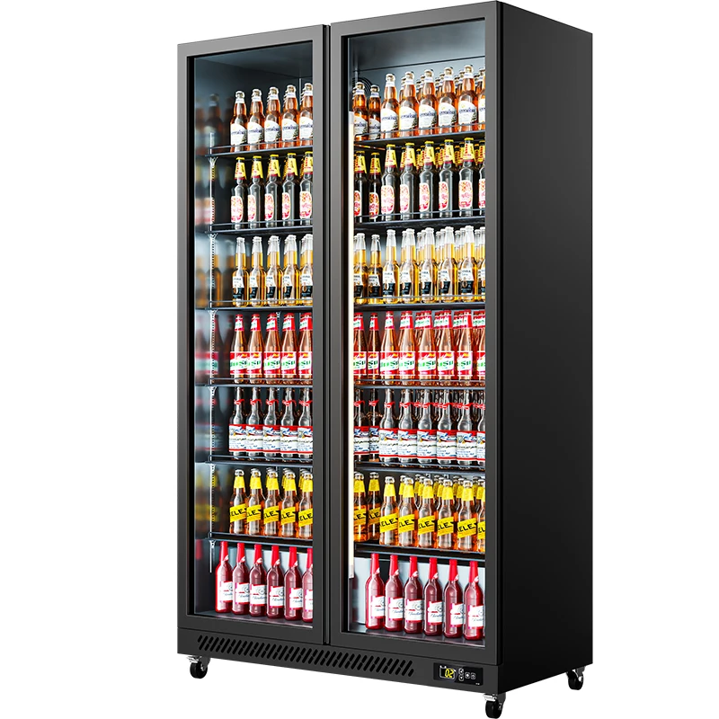 2024 элегантный бесшумный холодильник коммерческий охладитель для напитков с прозрачными стеклянными дверями кафе