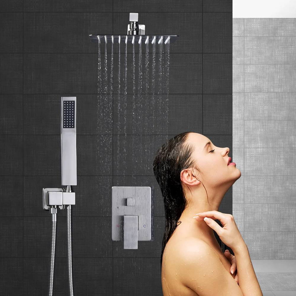 Латунный душевой кран Набор черный 8-12 дюймов настенный из нержавеющей стали для ванной комнаты