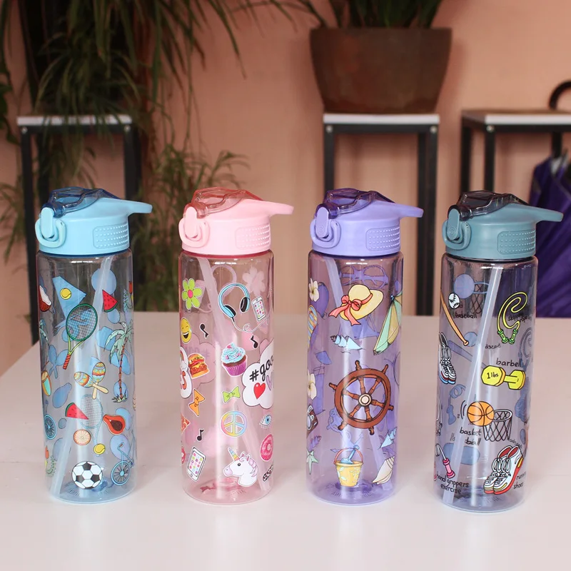 Простые портативные пластиковые стаканчики с цветными откидными крышками спортивные бутылки для питьевой воды заваркой чая
