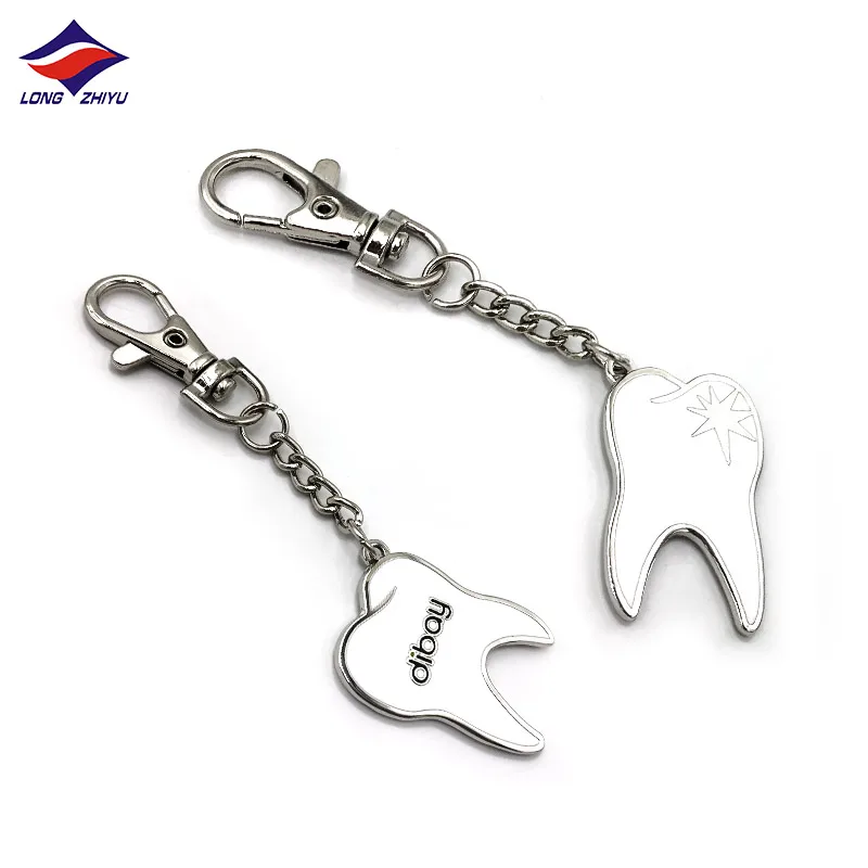 Металлические брелки в форме зуба Longzhiyu с индивидуальным логотипом, серебряные Твердые эмалированные брелки, милый мультяшный брелок для ключей от производителя 17 лет
