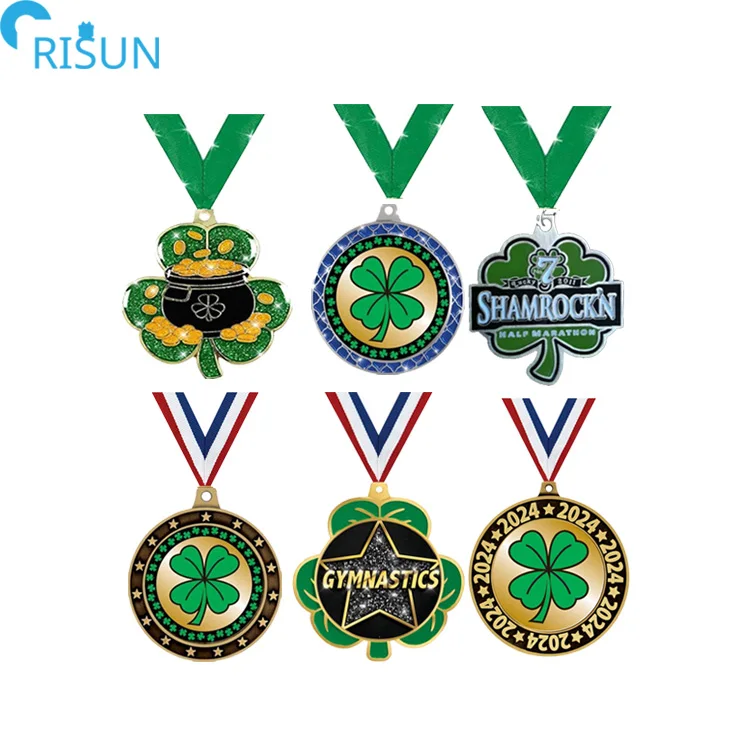 Индивидуальный 3D-логотип четырехлистный клевер синяя решетка медаль награда на заказ призер медальон