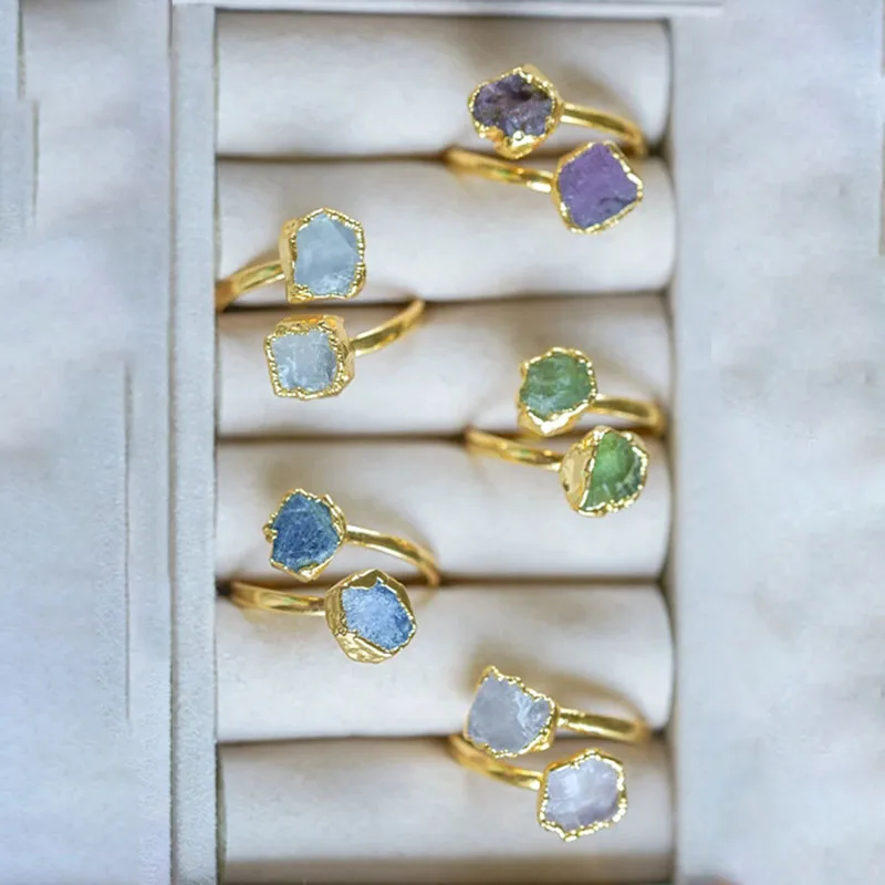 Позолоченное регулируемое кольцо с матовой отделкой гранатом и необработанным камнем ручной работы эффектные кольца по месяцу рождения подарки