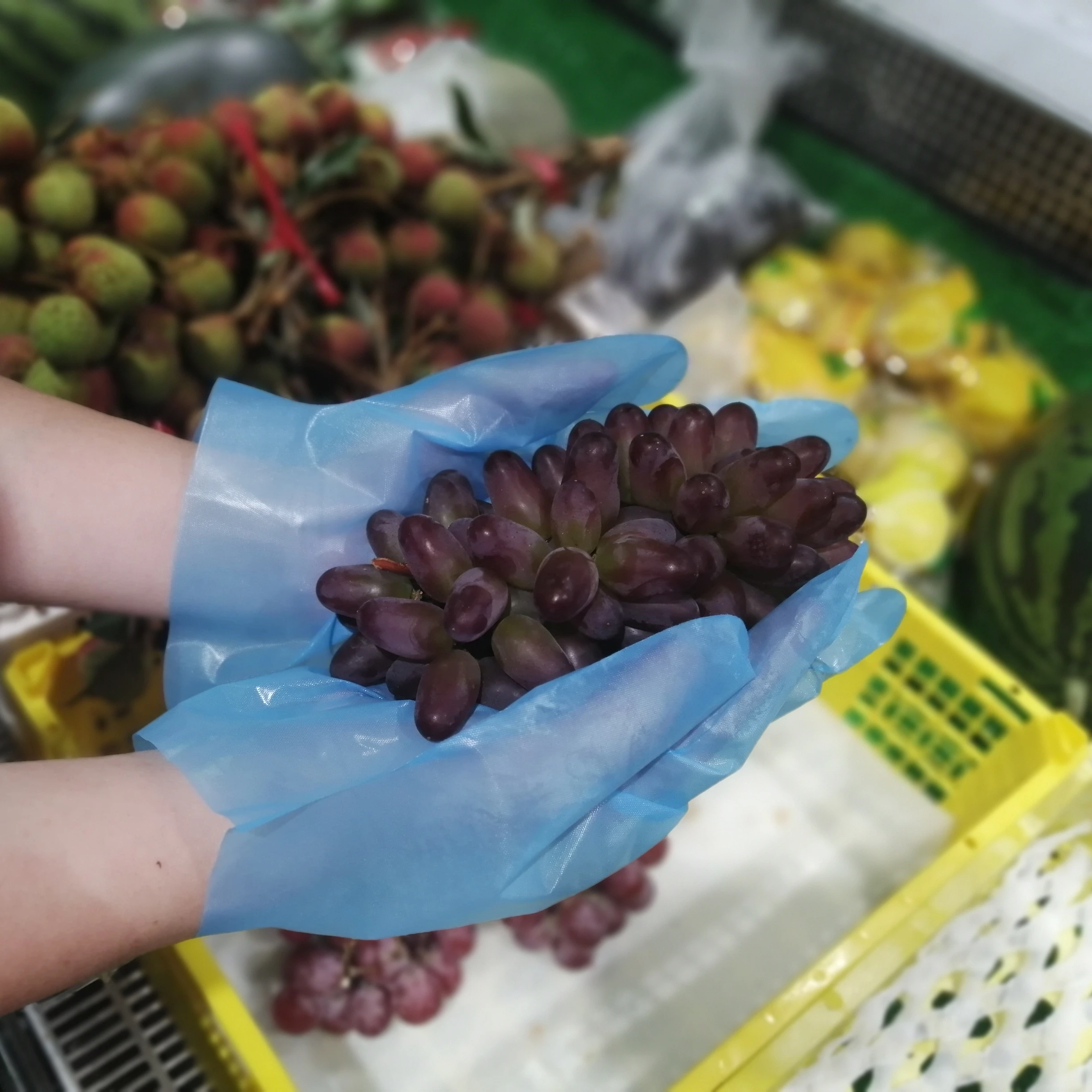 Гибридные безопасные для пищевых продуктов эластичные перчатки среднего размера из ТПЭ синего цвета (100 в коробке) 0,89-0,92 $