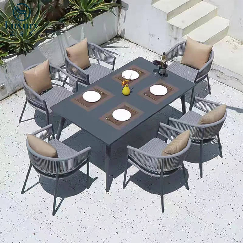 Металлический набор антикоррозийные алюминиевые обеденные стулья и столы мебель для патио садовый обеденный стол