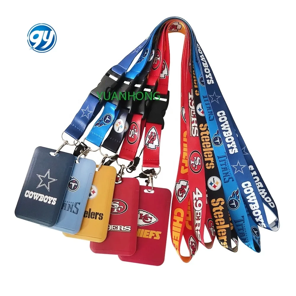 Высокое качество оптовая продажа id-карта телефон nfl шнурок с сублимационной печатью Тканые нейлоновые полиэфирные шнурки логотипом на заказ