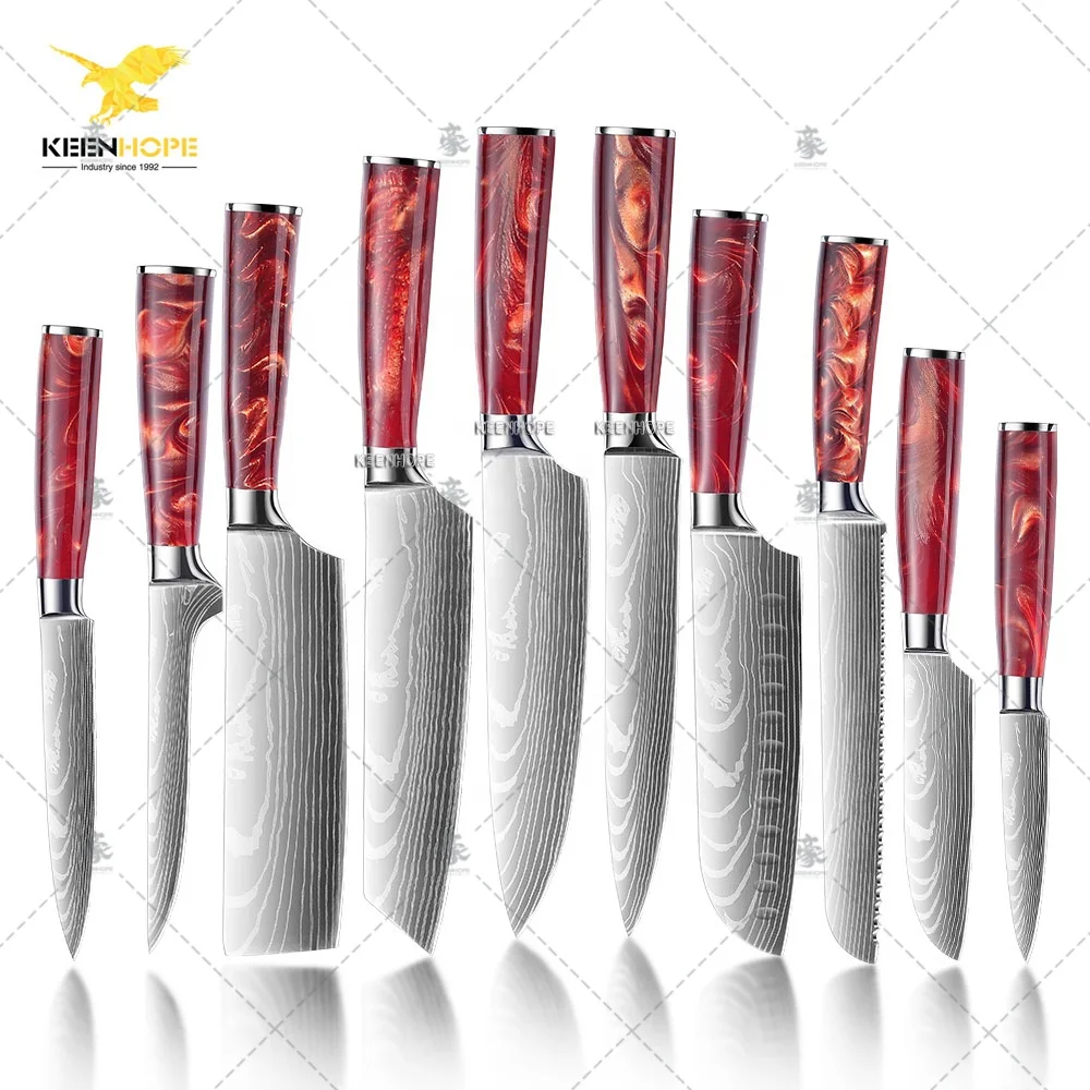 A: We specialize in the production of cost-effective knives, medium and high-end composite steel knives.Such as China 7Cr17Mov stainless steel laser pattern knives, hand-forged knives,Damascus composite steel knives, German steel 1.4116...The handles are made of natural wood such as color wood, G10, Micarta,Pakkawood,rosewood, wenge wood, and olive wood.