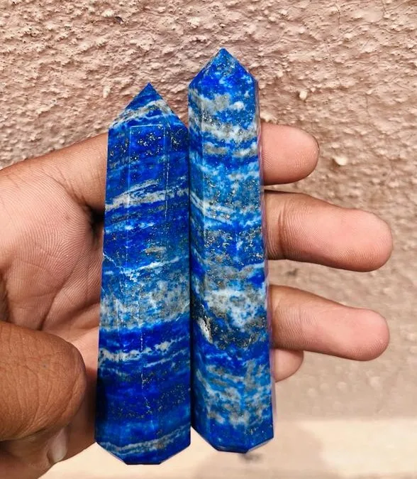 Большой 4-граненный Лазурит, Хрустальная башня, вырезанный вручную, обелиск, точечный Хрустальный подарок для дома или офиса, декоративная цель
