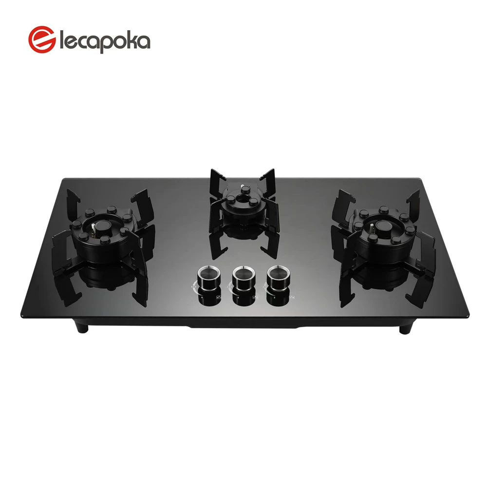 Газовая плита с тремя конфорками из черного закаленного стекла 30 дюймов питанием от батареек для домашнего использования кухонная техника