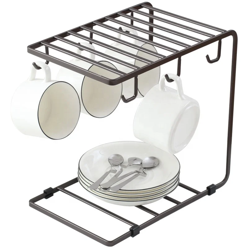 T7U металлическая кружка дерево подставка держатель чашки для борьбы с 6 Крючки дисплея кофейной Вешалка Органайзер кухонного шкафа