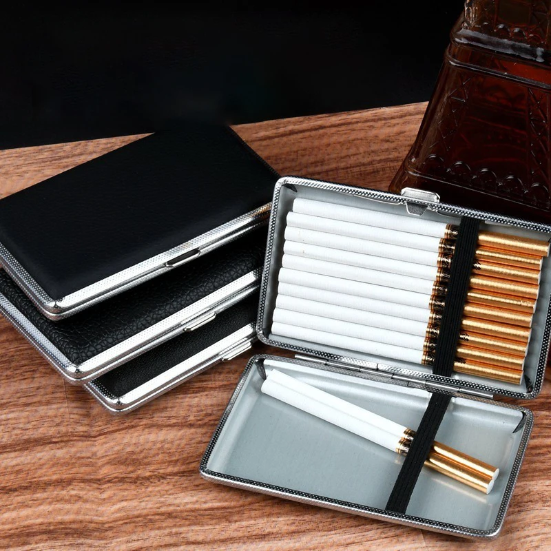 Оптовая продажа металлический кожаный Железный зажим для сигарет портсигар мужчин портативный высококачественный органайзер с ладаном под давлением