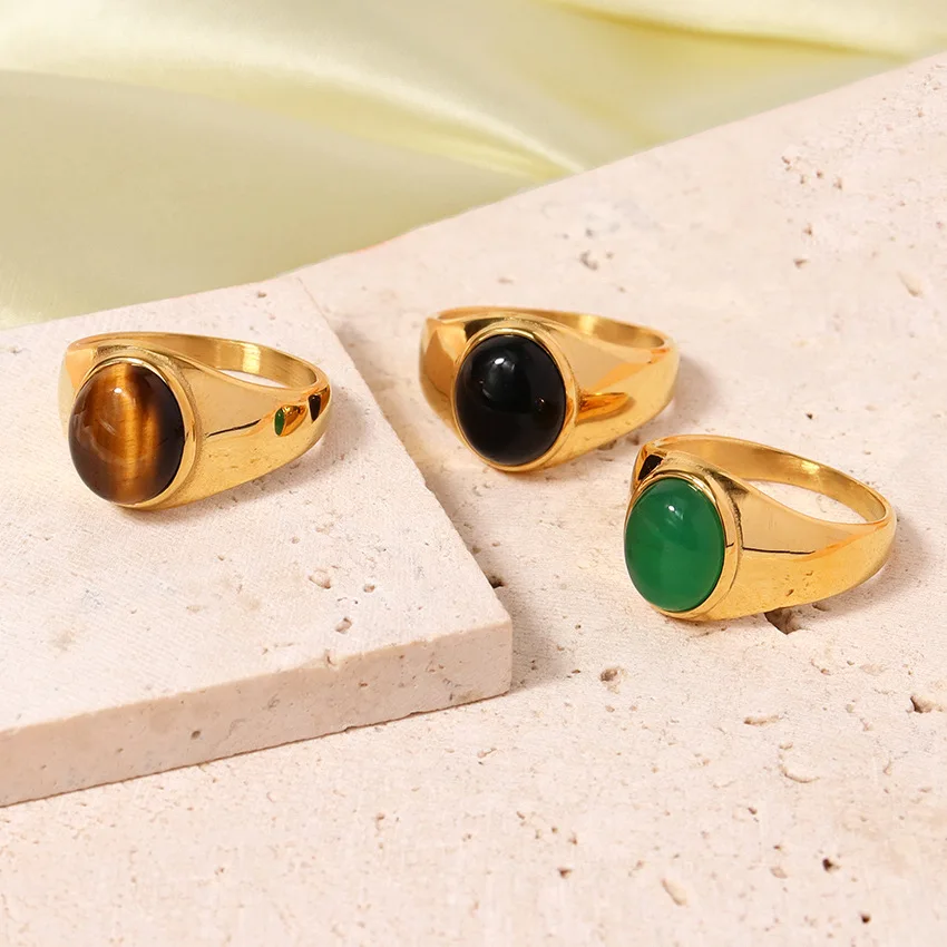 Роскошное металлическое кольцо с драгоценным камнем, инкрустированное 13 мм тигровым глазом, обсидиановое позолоченное кольцо из нержавеющей стали