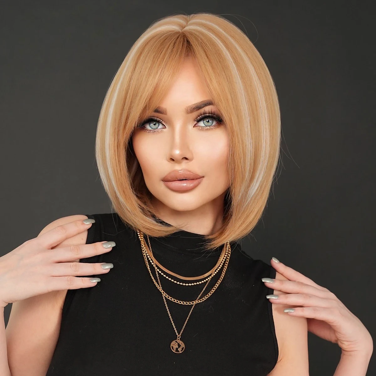 Парик медовый блондин боб с челкой короткий Боб Wig14 дюймов прямой синтетический для косплея Хэллоуин естественный вид 713,31 ₽ - 827,44 ₽