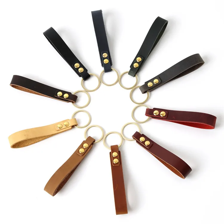 Оптовая продажа, кожаный брелок с золотым кольцом для ключей с пользовательским логотипом
