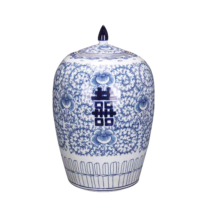 Античный китайский фарфор синий и белый Имбирные банки с крышками двойной храмовые для декора домашнего керамика