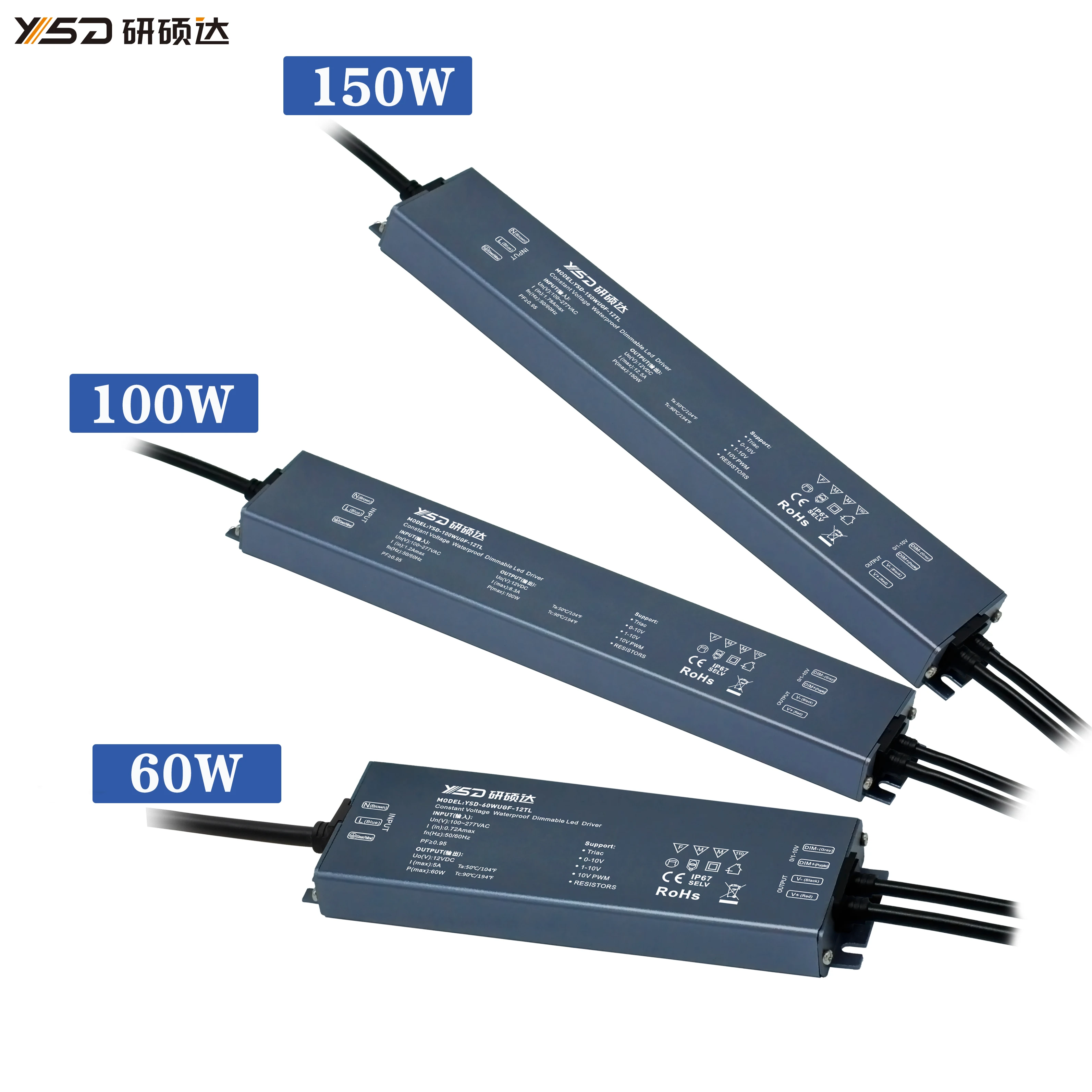 YSD Высококачественный водонепроницаемый светодиодный драйвер с регулируемой яркостью 60 Вт 12 в 24 В IP67 водонепроницаемые осветительные трансформаторы 5-летней гарантией CE/RoHS