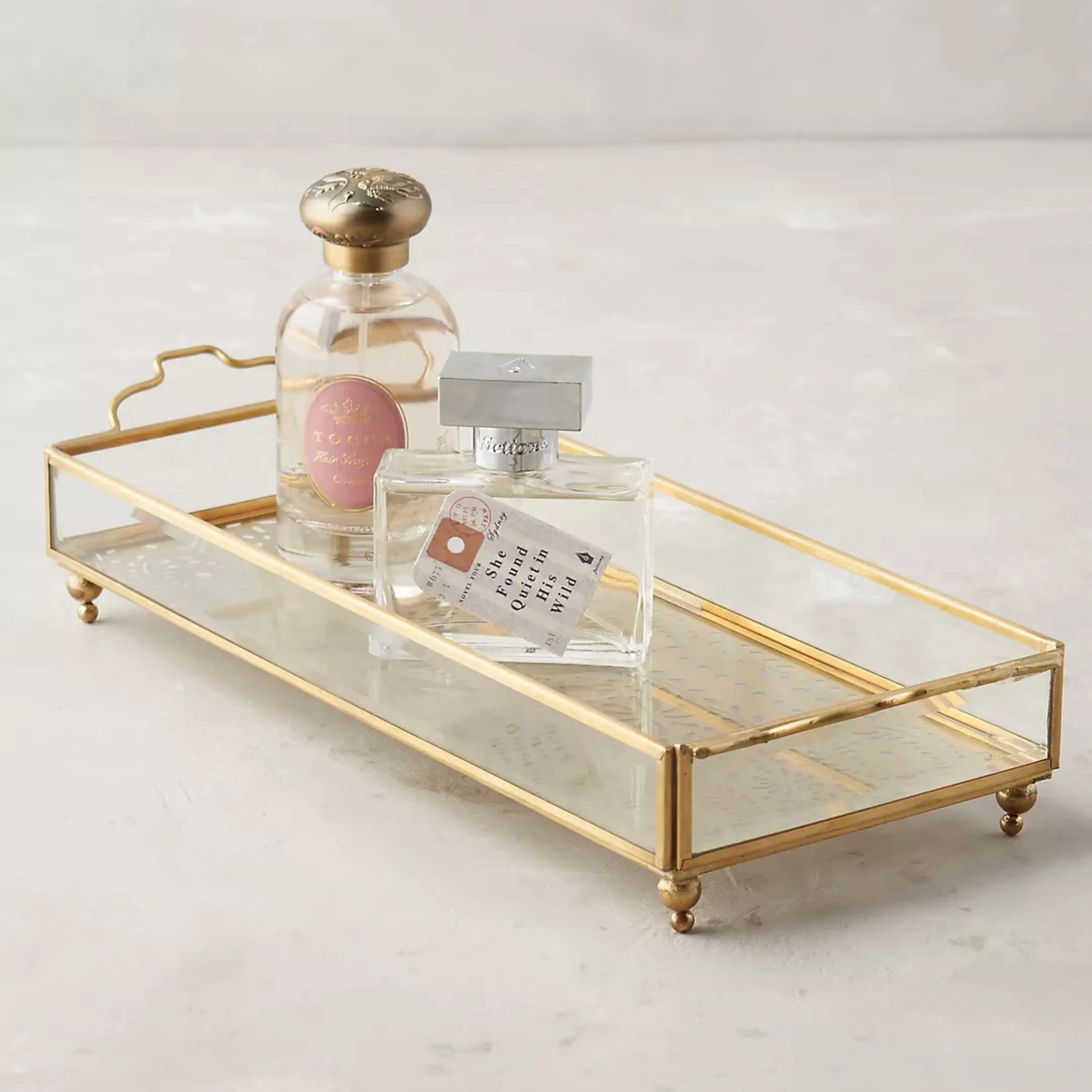 Декоративный металлический поднос из золотого стекла с дизайнерской основой для хранения украшений и сервировки