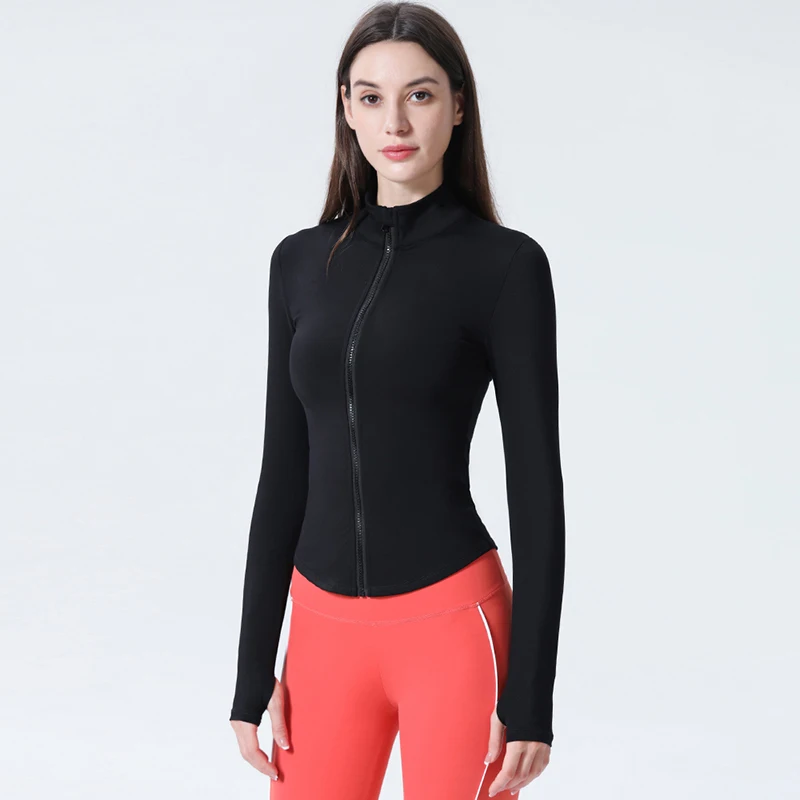 Новая спортивная одежда Женская куртка для занятий йогой резиновая на молнии бега с вырезом большого пальца черные облегающие короткие куртки женщин