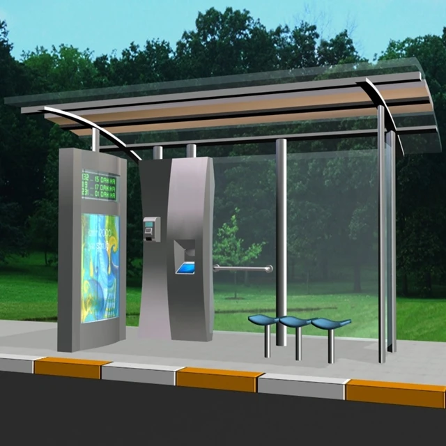 Современная автобусная остановка с конструкцией из алюминиевого сплава и интегрированными рекламными световыми коробами для городских пространств