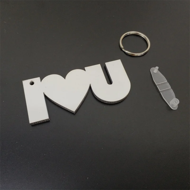 I LOVE YOU Sublimation MDF Keychain Blank Double Sided Key Ring Wood Custom Engrave Holders