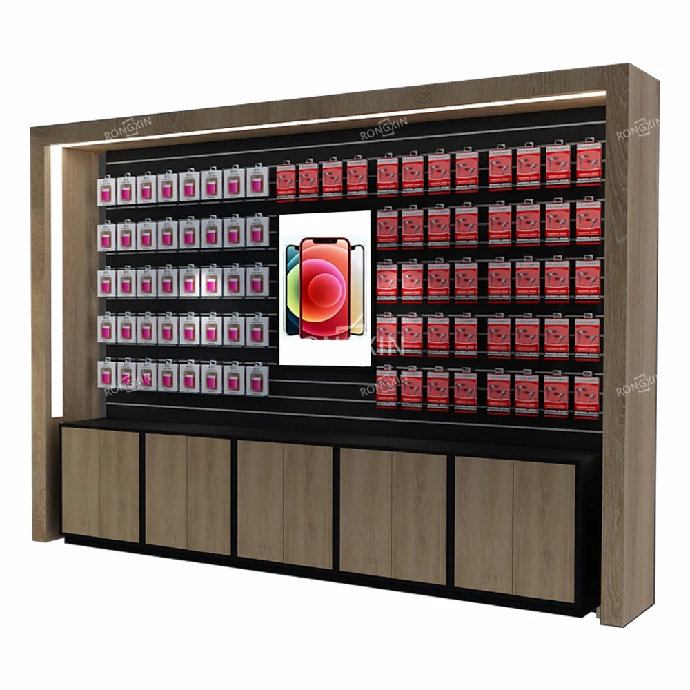 Деревянный стеллаж для мобильного телефона настенный сотового полка электронных аксессуаров полки магазина дизайн розничного 30 091,26-39 275,73 ₽