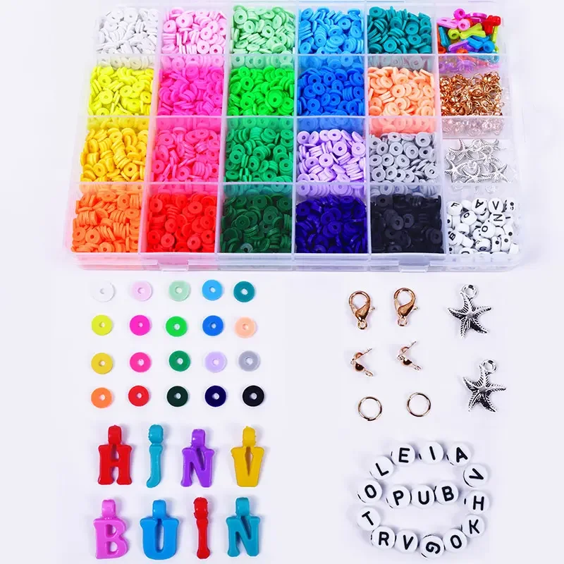 Лидер продаж 2023 пластиковые детские украшения плоские круглые 6 мм Разноцветные полимерные глиняные бусины наборы для изготовления браслетов ювелирных изделий
