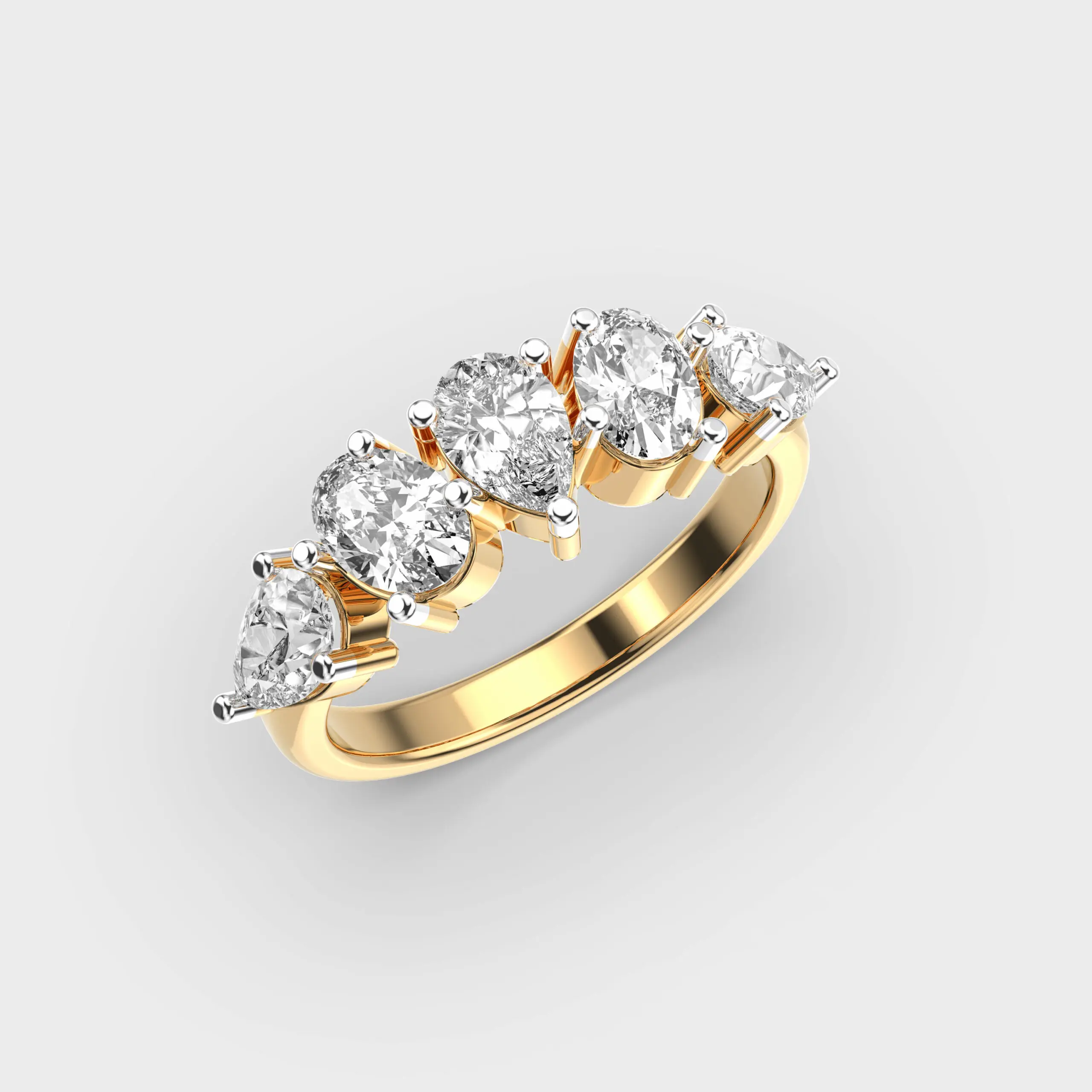Gia Igi сертифицированное Cvd лабораторное выращенное бриллиантовое кольцо 10k 14k 18k Золотое обручальное груша огранка из розового золота Скрытая лента