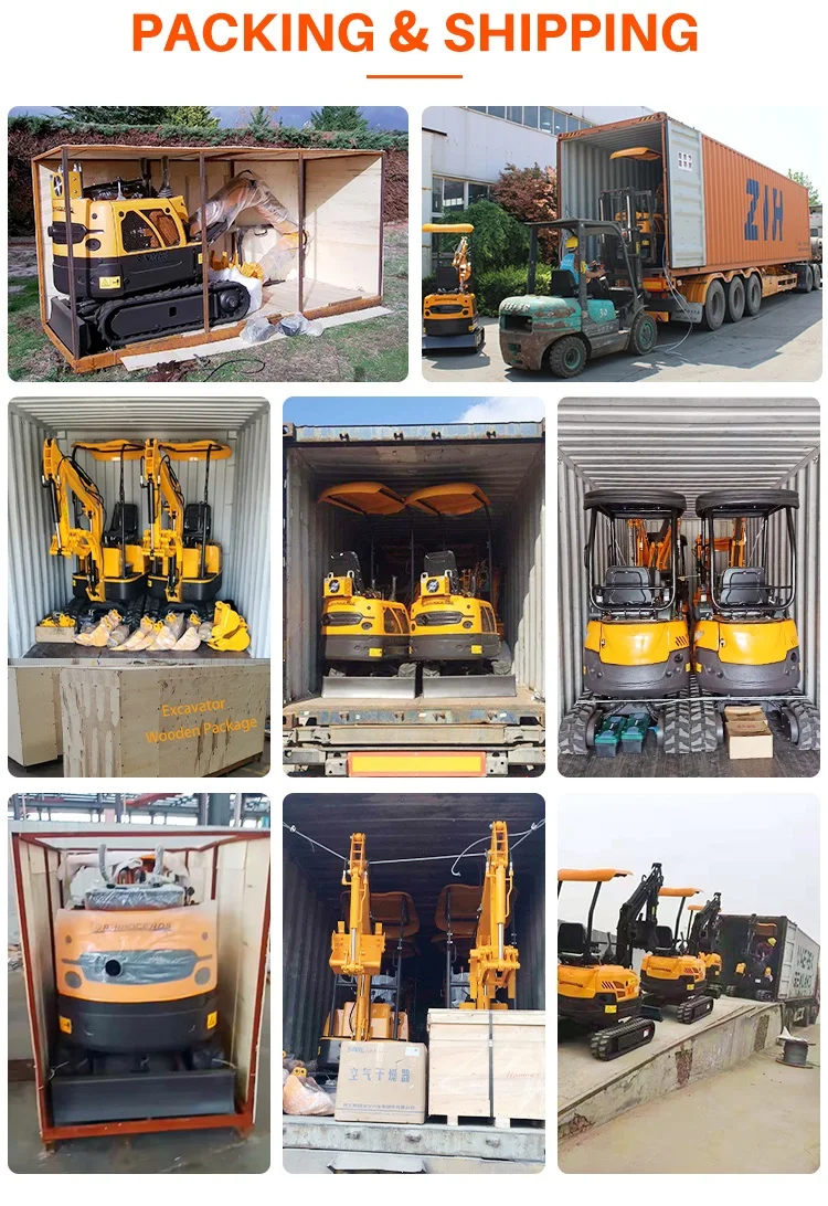 What is the machine advantage? Why I choose from you ? A: Adopting world famous brand engine and parts, ensure long life service, all the structure parts are produced and checked by our engineers.Each machine is carefully tested before send to customer.Warranty time for 1 year or 1200 working hours. How many units can be put in container? A: 6 units can be in a 20ft container, 13 units can be in a 40HQ container. will be fixed with wire ropes. Are you able to export less than 1 container of mini excavator ? And what's the wooden box's dimension and total weight ? A:Yes ,if 1 unit or 2 units mini excavator machine could shipment by LCL, wooden box; if 4 unit or more than 4 units suggest used 20ft container. If do not have trailer, the wooden box dimension is 2.8x1.12x1.4m , about 4.3m3; if have trailer the wooden box dimension is 2.8x1.4x1.8m,about 7.54m3. Total weight about 1000kg. The warranty of the machine and how will you carry out the service? A: Warranty period: 1 years or1200 working hours manufacturers warranty whichever comes first. One line service is provided 24 hours every day, there are technicians ready to serve for you, they are well trained, they can be assigned to your site and serve for you.