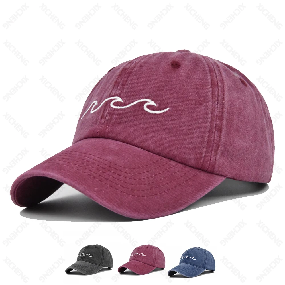 Модная неструктурированная бейсбольная Кепка с вышивкой океанских волн потертая защитой от солнца 6 панелей винтажная для четырех человек