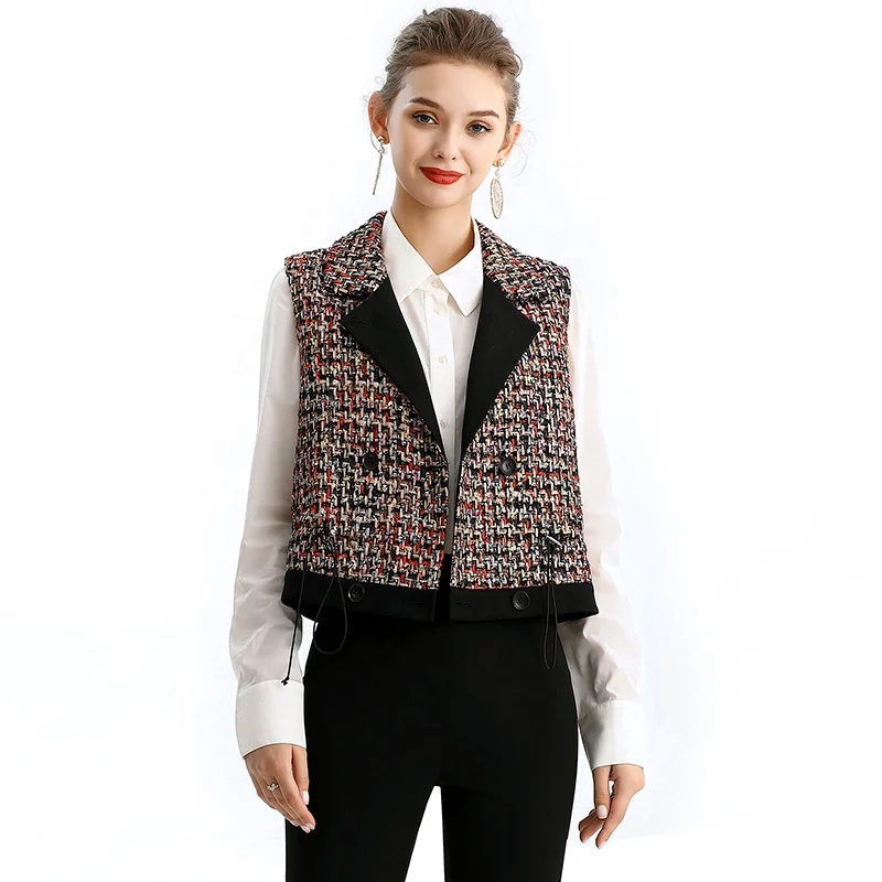 Новый Модный женский жилет без рукавов Блейзер минимальный заказ плиссированный кружевной однобортный высококачественный блейзер для элегантных офисных дам