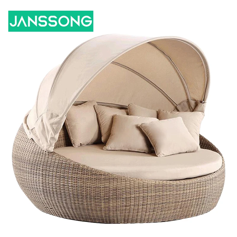 Janssong мебель для бассейна плетеная кровать из ротанга садовая круглая двухместная уличная кушетка с веревкой