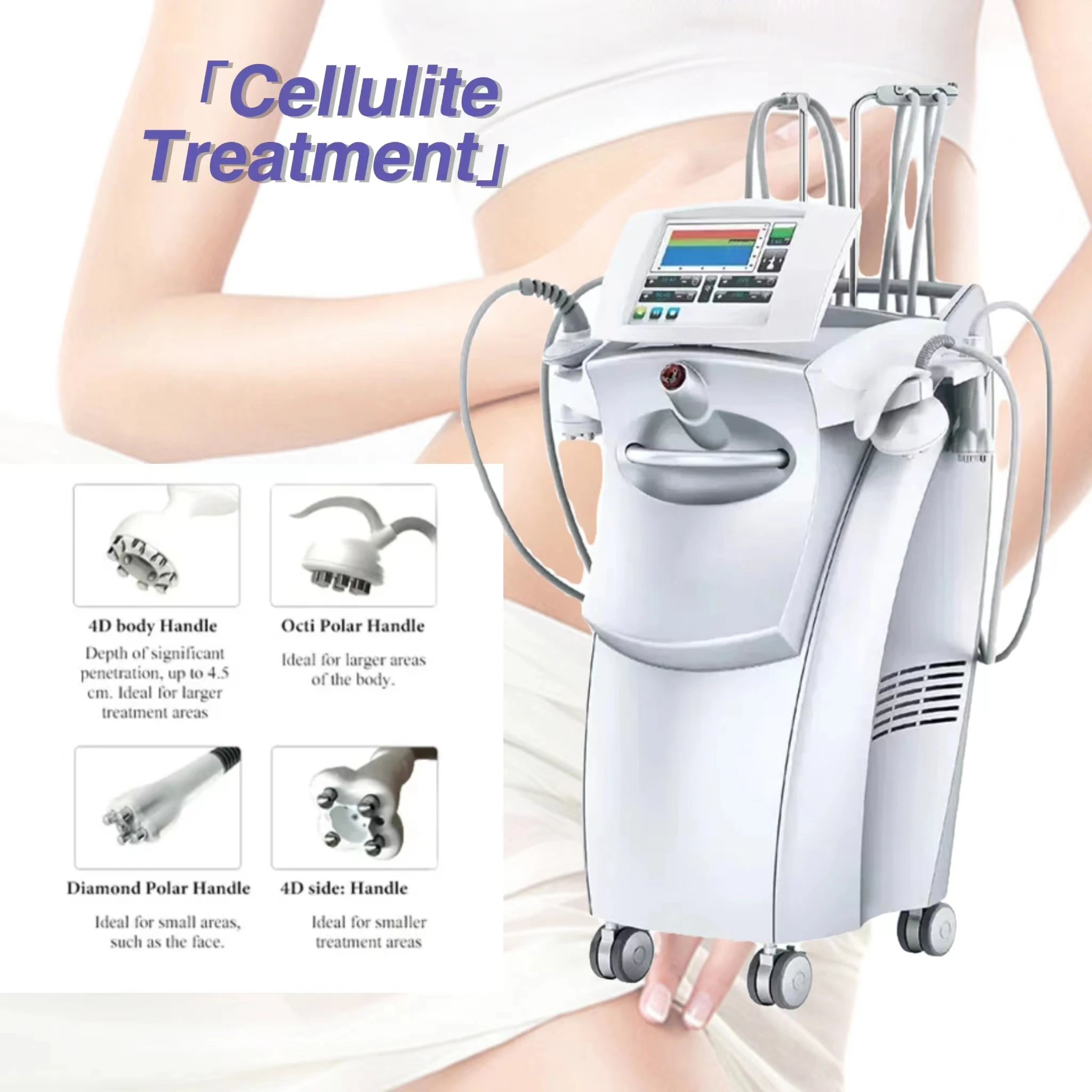 Technology with Cavitation, Vacuum & Multi-polar Radio Frequecny & LED ---We use Multi-Polar Radio Frequecny and pulsed Electro Magnetic Fields to produce a dense, uniform heat matrix, stimulating the body's natural helaing response. It increases collagen synthesis without pain, resulting in a dramatic improvement to the skin.