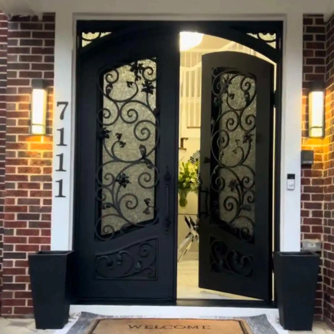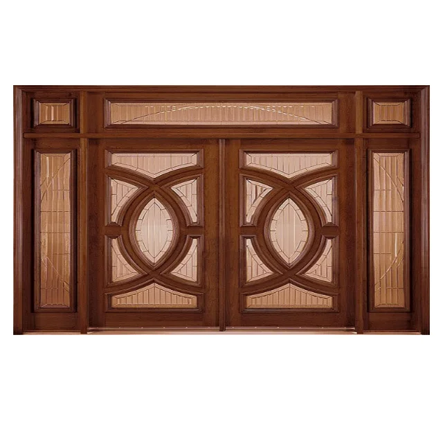 Оптовая продажа Современная внешняя дверь деревянная мебель для виллы массивная Двойная дизайн с классическими деревянными рамами из натурального дерева