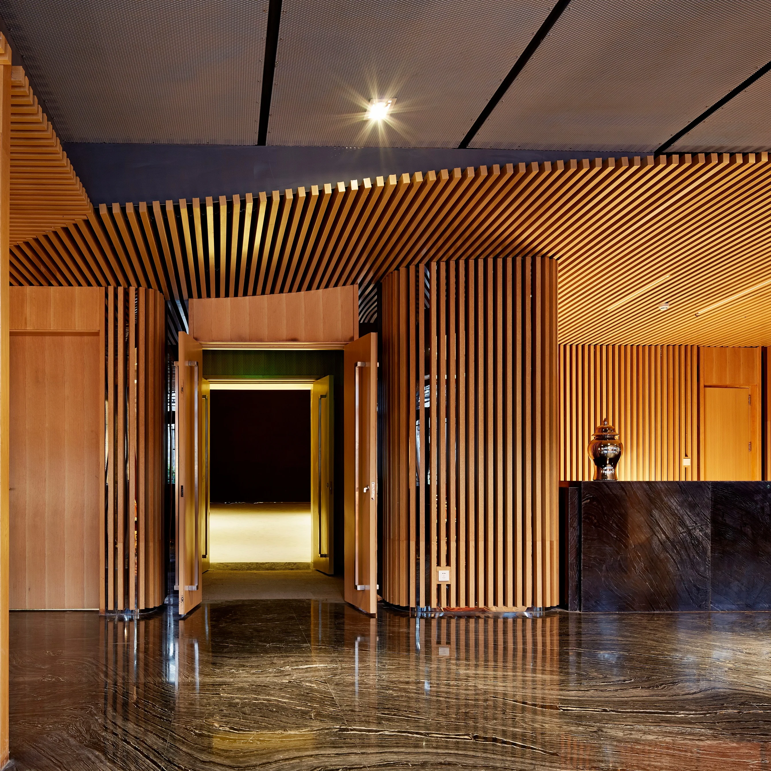 Новинка 2021 модная дизайнерская потолочная панель из ПВХ деревянная зернистая квадратная труба интерьерная Декоративная Потолочная Плитка Из ДПК 343,21-380,68 ₽