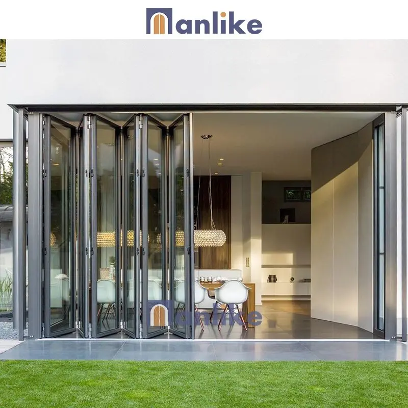 Современные входные двери Minglei 4 панели раздвижные с двойным остеклением для патио алюминиевые стеклянные