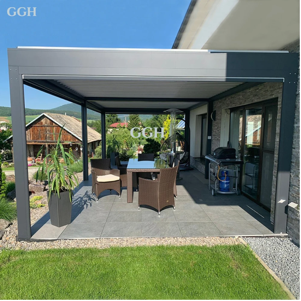 Популярный стиль водонепроницаемый электрический затвор на крыше беседка вилла наружная алюминиевая по индивидуальному заказу